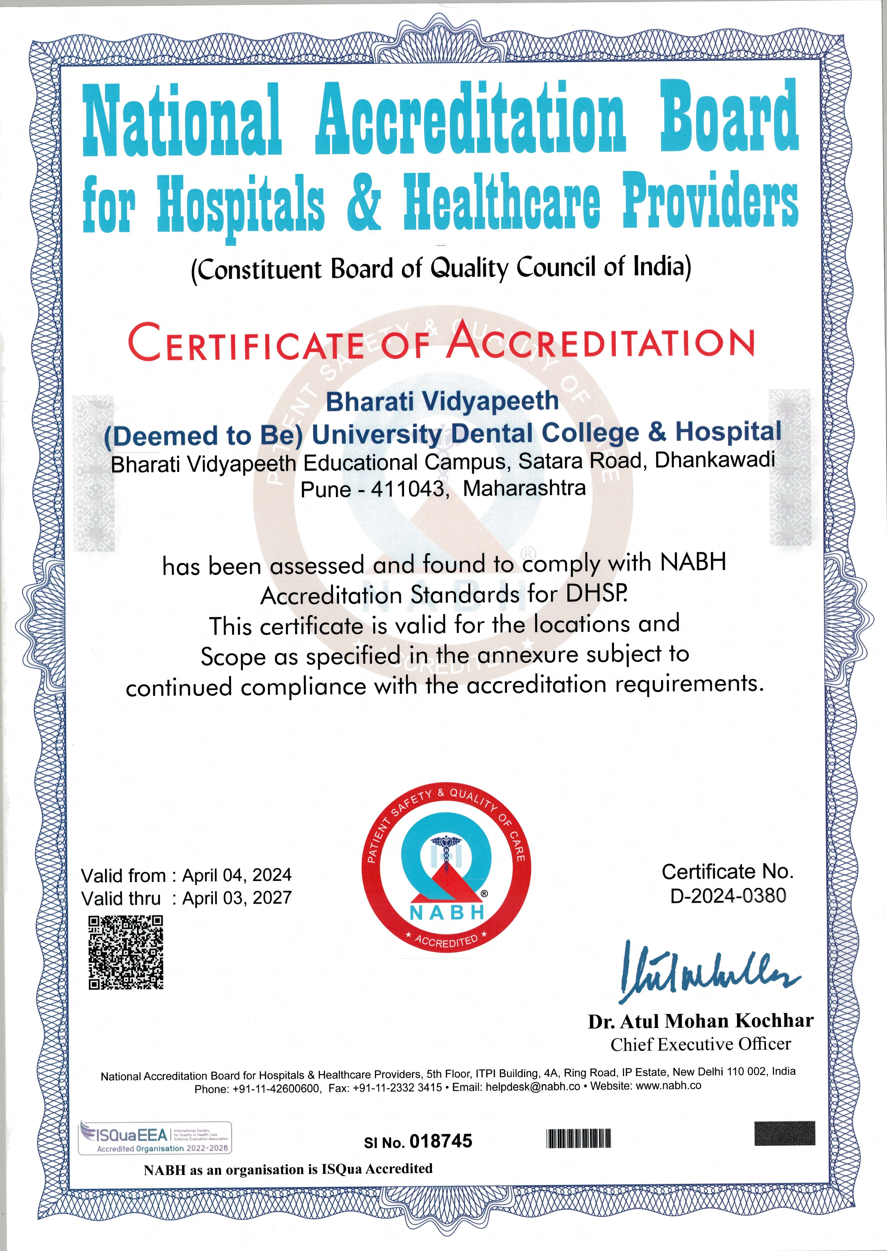 Dental College and Hospital, a jewel in the crown of Bharati Vidyapeeth Deemed University, was established in 1989. The college has been recognized by the Dental Council of India. Over the years, this college has earned recognition and reputation at the National level. Currently, under graduate course with an intake of 100 students per year, Post graduate courses in eight subjects with an intake of 42 students per year and PhD in 8 subjects are being offered at this college. The courses offered are recognized by the Dental Council of India. The college is provided with huge space for its clinics and laboratories which are equipped with modern equipment and materials.