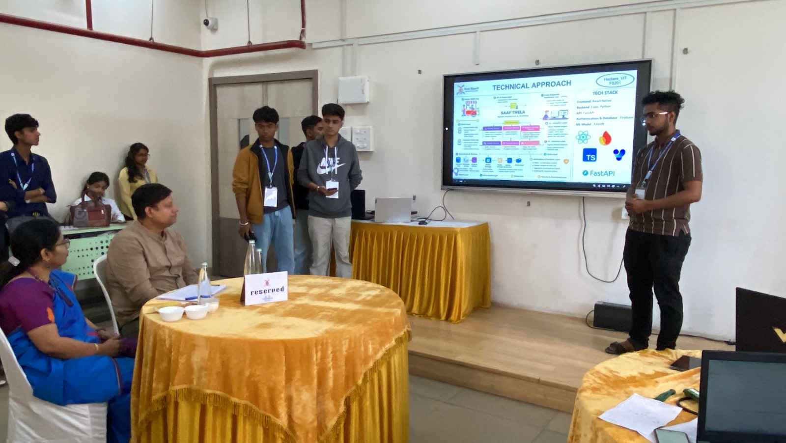 It was a 36 hour nonstop coding event, Domain experts and technical experts were invited as mentors for the event, Mr. Anup Chandra, Tata Communications, Country Head, Mr. Prakash Dubey, Coversure, Co-Founder & Chief Distribution Officer, Mr. R. S Raghu, Linfox Physics honours, Head –Operations, Mr. Ankur Shrivastava, SBI(Global IT Centre) Specialist Officer-Manager(Systems), Mr. Hemant Khatri, Morning Star, Team Lead, Mr. Amit Karia, MSCI Inc, Vice President,