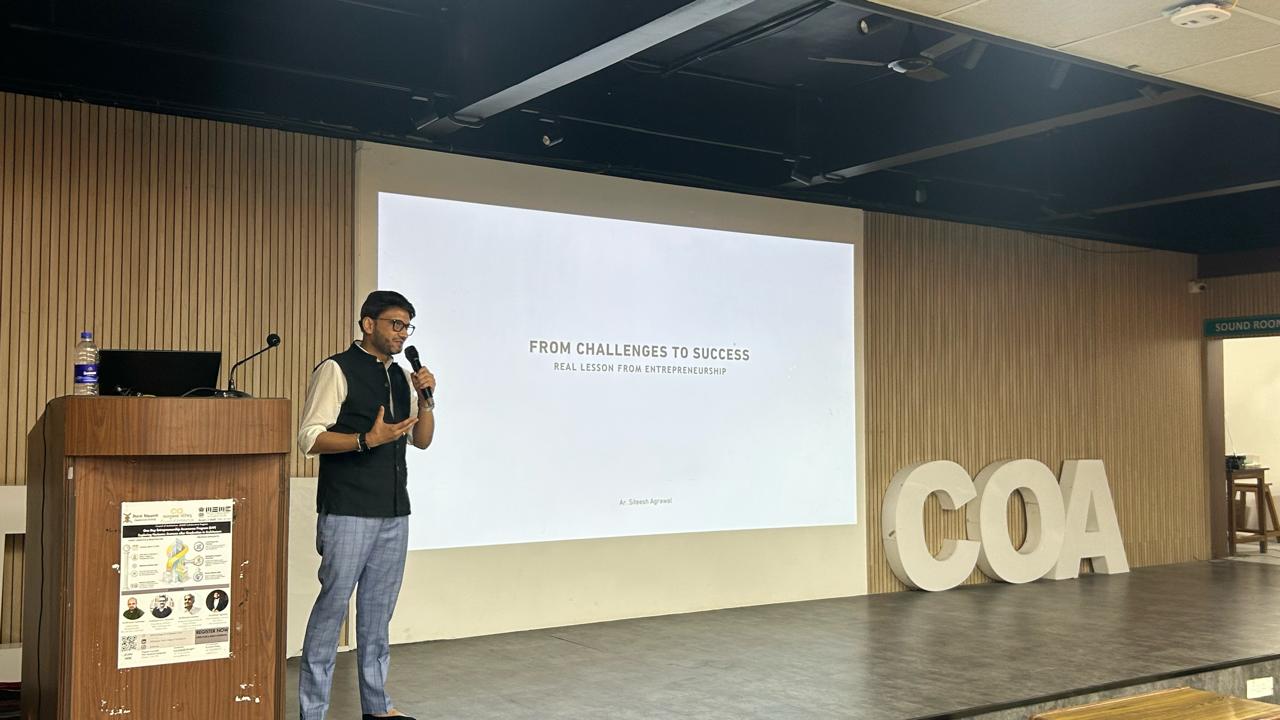 The event featured insightful sessions by distinguished speakers, including Dr. Shravan Kadvekar, Ar. Ramprasad Akkisetti, Mr. Bhushan Kolekar, and Ar. Shitesh Agrawal, who shared valuable perspectives on entrepreneurship, career opportunities, and professional growth in the field of architecture.