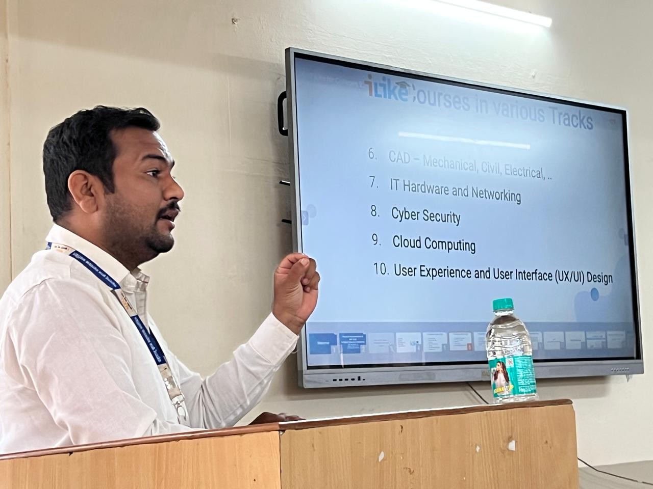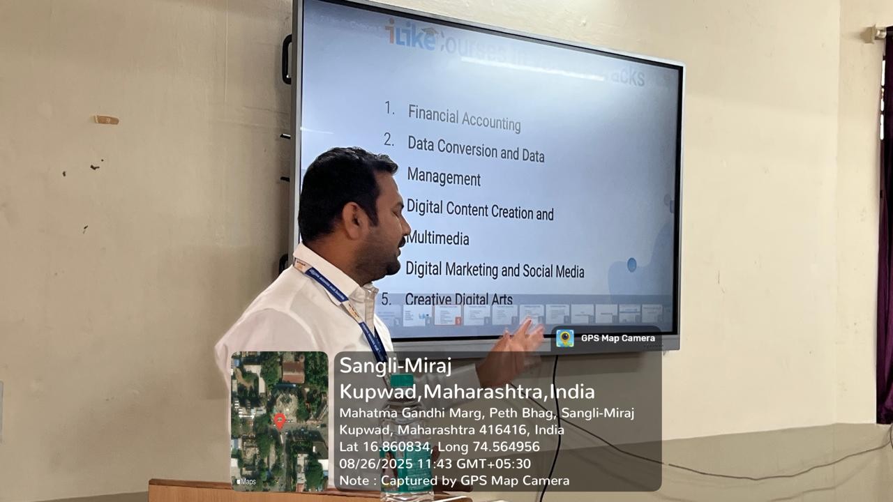The Institute organized a guest lecture by Mr. Abhijeet Patil, Marketing In-charge at Maharashtra Knowledge Corporation Limited (MKCL), on Tuesday, 26th August 2025. The session introduced BBA and BCA students to MKCL’s “iLike” initiative, designed to meet the requirements of academic-mandated MOOC courses while building essential 21st-century skills.