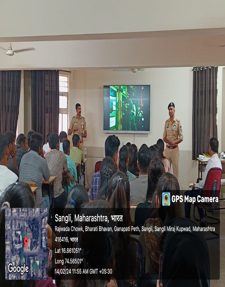 On the occasion of Road Safety Week, institute’s NSS unit organized a guest lecture on Road Safety and Traffic Rules on Thursday, 14th February 2024. Mr. Akash Galinde, IMV, Deputy Regional Transport Office, Sangli and Mr. Sumit Mule, AIMV, Deputy Regional Transport Office, Sangli were guests for the session. Director, Dr. Pallavi Jamsandekar welcomed and felicitated the guests. Vice Principal Dr. Pratap Desai explained the objectives of organizing the session. In his speech Mr. Mule guided the students on various traffic rules and urged everyone to strictly follow all the rules. Institute’s NSS Head Mr. Yogesh Patil worked as event coordinator.