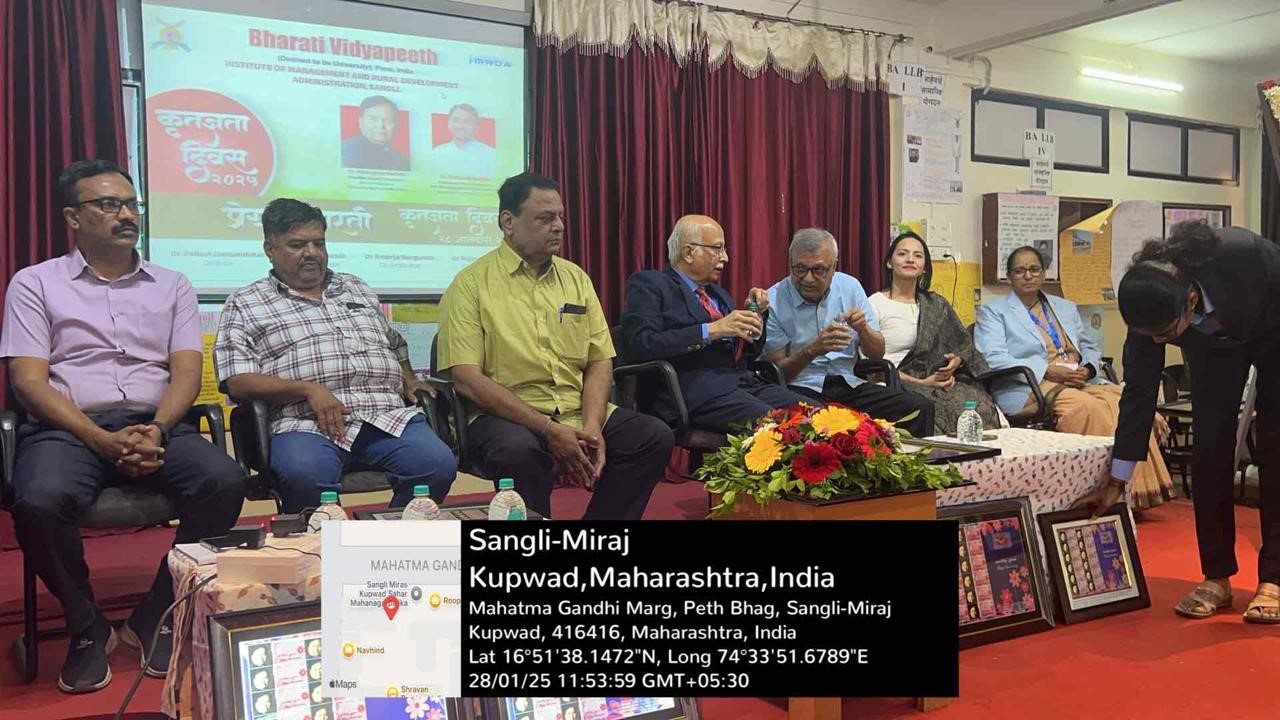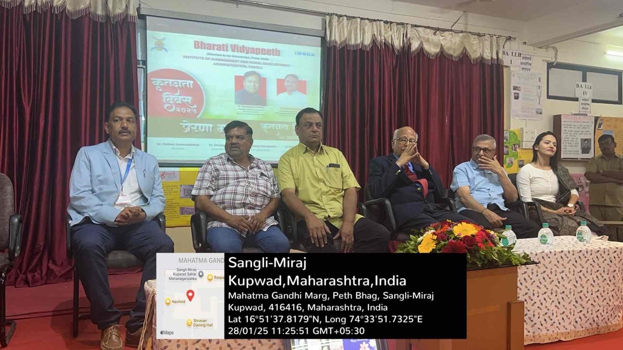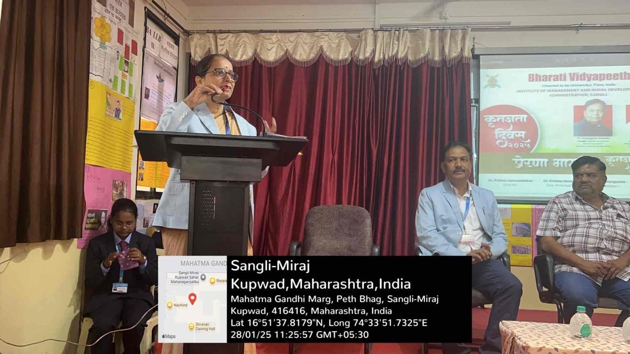 On the occasion of Birth Anniversary of Hon. Founder Bharati Vidyapeeth and Hon. Founder Chancellor Bharati Vidyapeeth (Deemed to be University) Dr. Patangrao Kadam Saheb and birthday of Hon. Secretary Bharati Vidyapeeth and Hon. Pro Vice Chancellor Bharati Vidyapeeth (Deemed to be University) Dr. Vishwajeet Kadam, the institute celebrated “PreranaBharati 2025”. As part of it, eminent achievers were felicitated on Tuesday, 28th January 2025. Renowned dermatologist and theatre artist Dr. Dayanand Naik was the chief guest for the program. Senior Radiologist Dr. Shrinivas Natekar and gynecologist and first Ironwoman from Sangli district Dr. Shilpa Date were the guest of honor for the function. Director Dr. Pallavi Jamsandekar welcomed all and explained the purpose of the program was to express gratitude to those who were contributors to the field of art, science, sports and social work.Vice Principal Dr. Pratap Desai talked on how different programs under Prerana Bharati are being organized to celebrate the life of Dr. Patangraoji Kadam Saheb.