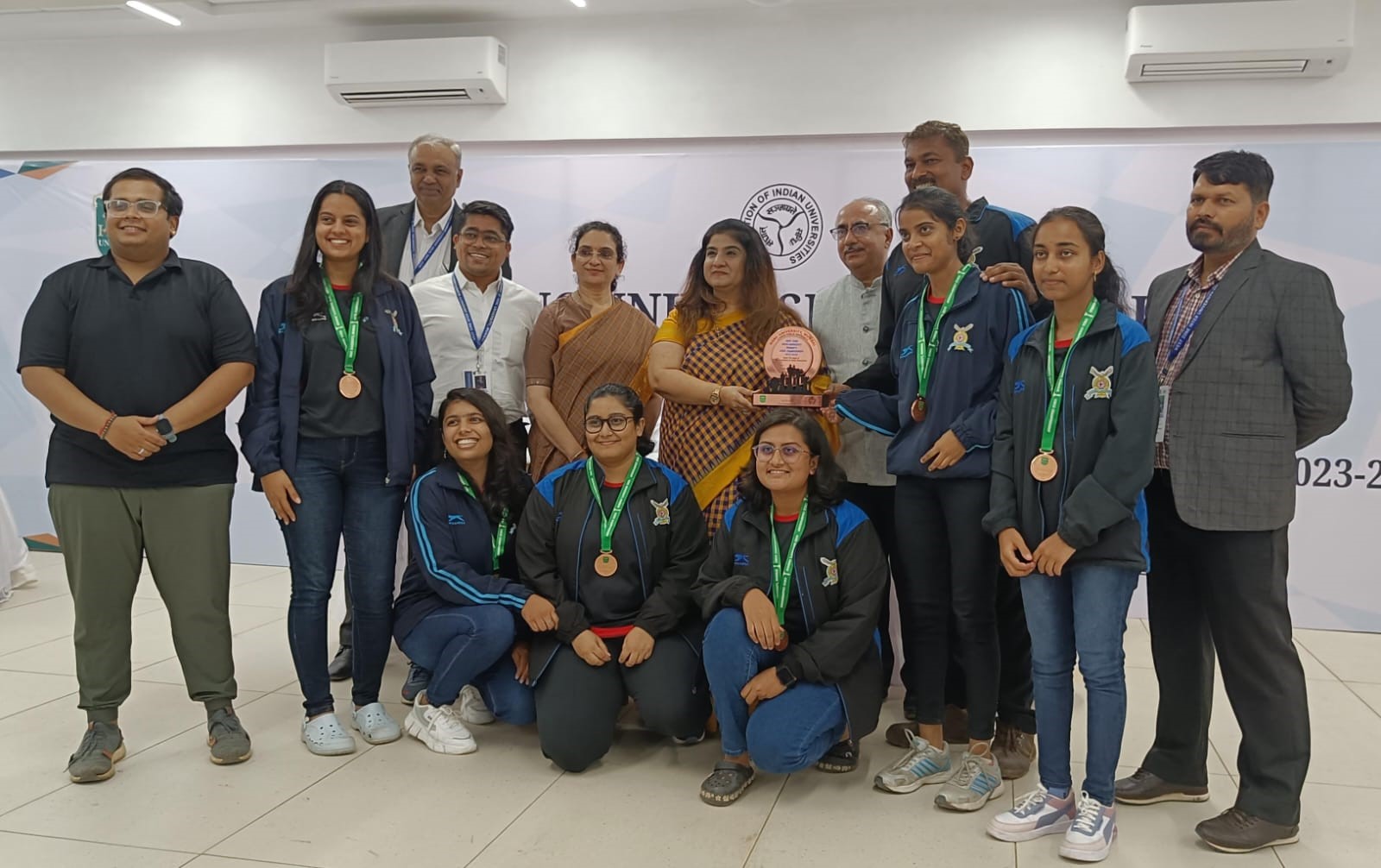 Bharati Vidyapeeth (Deemed to be University), Pune’s women chess team won the Bronze Medal in West Zone Inter University Chess Championship 2023-24. The Tournament was organized by HSNC University, Mumbai. The team comprised of BCA 2nd year student Priti Harale of the institute.  Director Dr. Pallavi Jamsandekar and Vice Principal Dr. Pratap Desai have congratulated Priti and Institute’s Sports Director Mr. Yogesh Patil on the success.