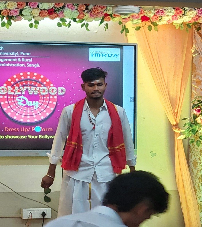 The institute ended the semester with Bollywood Day and Traditional Day on Friday and Saturday, 19th and 20th April 2024. Institute Alumnus and Famous Marathi Actor Mr. Amarnath Kharade was the chief guest for Bollywood Day. Director Dr. Pallavi Jamsandekar and Vice Principal Dr. Pratap Desai, Head of Computer Application department Dr. Rajendra Pujari and Head of Management Studies department Prof. Woodward Dexter guided in organizing the events. Dr. Suvarna Patil worked as event coordinator for Bollywood Day. Dr. Dhanashri Sahasrabudhhe and Dr. Ayesha Mujawar worked as event coordinators for Traditional Day.