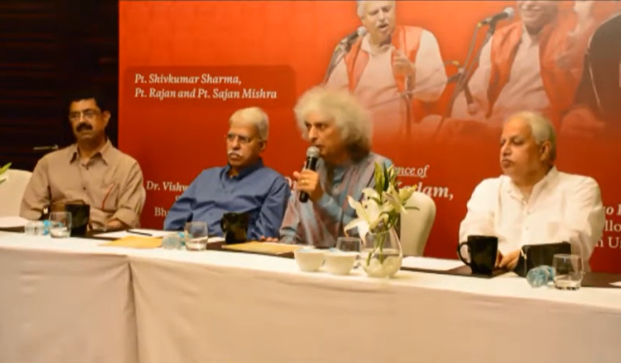 Pt. Shivkumar Sharma, Pt. Rajan Pt. Sajan Mishra talking in Swarspandan Press Conference