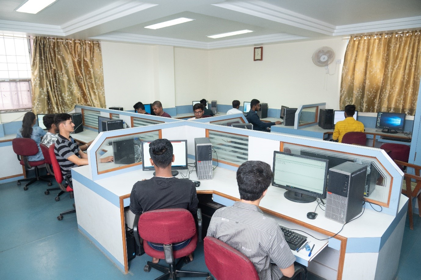 The licensed copies of the software used by the students is available in the department. Students carry out practical learning in these labs as well as is utilized research and development activities. 20KVA UPS is available to maintain the laboratories working all the time. Smart boards are installed in both the laboratories for effective delivery of knowledge. In these labs, students can carry out practical learning section and can do research and development activities also. The computer systems are in the laboratory are connected with the lease line internet speed of 100mbps Separate department library is available for students with latest books, journals and magazines.
