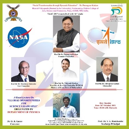 The Department of Physics has organized guest lecture on “Opportunities in Space and Atmospheric