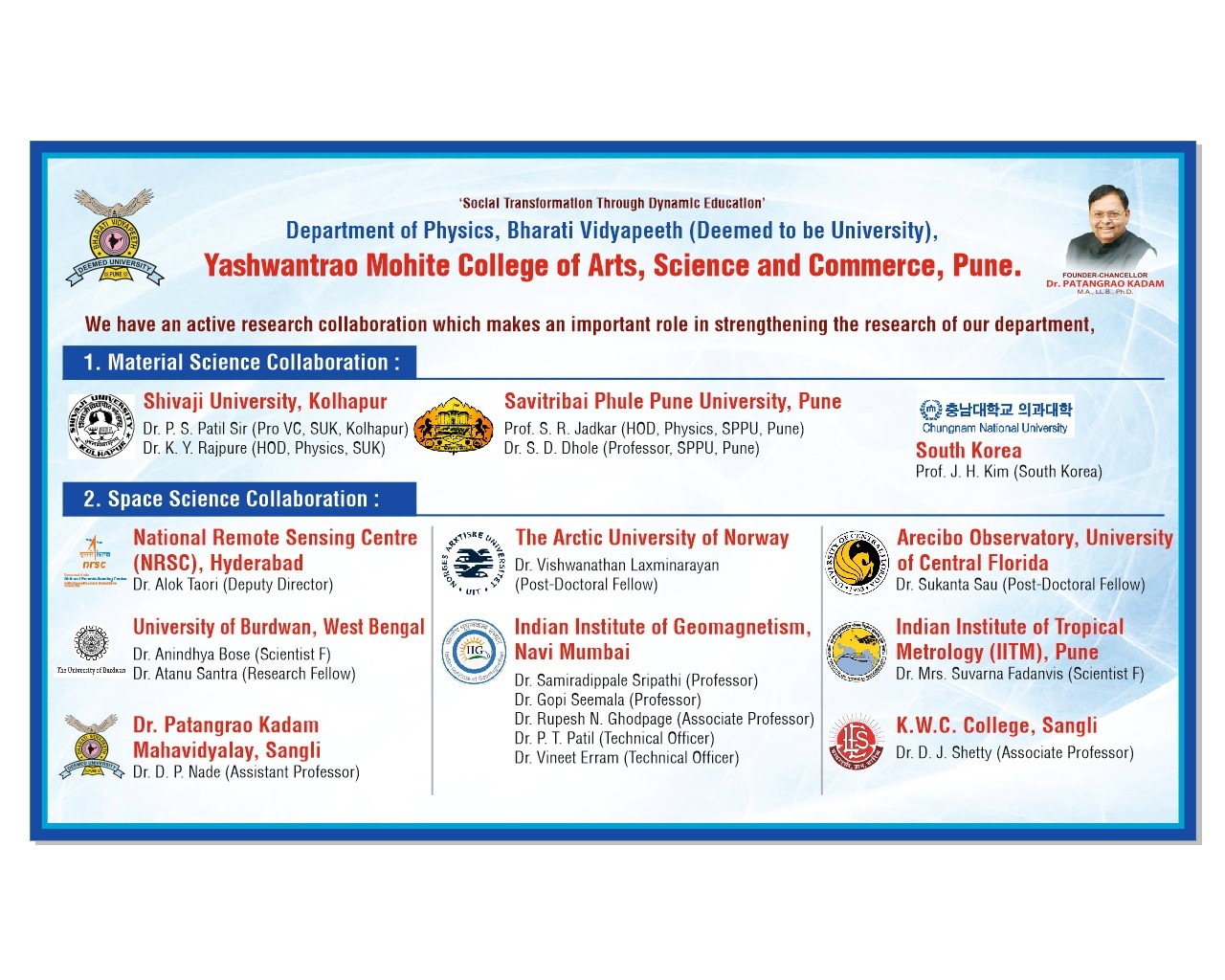 The department is centered in 02 areas of research. First is the field of Material Science which