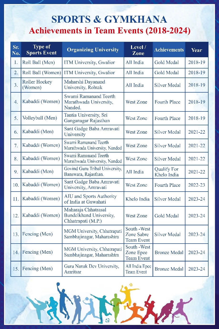 Inter University Tournament and all India Inter University Tournaments.